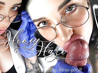 Sie spuckt auf deinen Schwanz, wichst dich und bläst bis zum Orgasmus, dann benutzt sie das Sperma für die Eiermassage