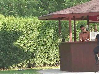 Eine schöne Mutter und ihr junge Lover machen es in der Natur